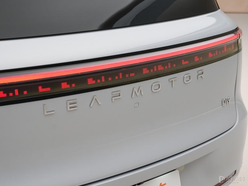 车尾延续简约风格,贯穿尾灯组内置1958mm超宽 ISD 智慧交互灯幕豪资随配,含11025 颗LED灯珠,支持多场景智慧灯语。灯组下方则是零跑的英文LOGO标识。后包围与车身采用同色设计,牌照框区域的内凹式造型搭配贯穿式的银色装饰条,拥有不错的立体感。