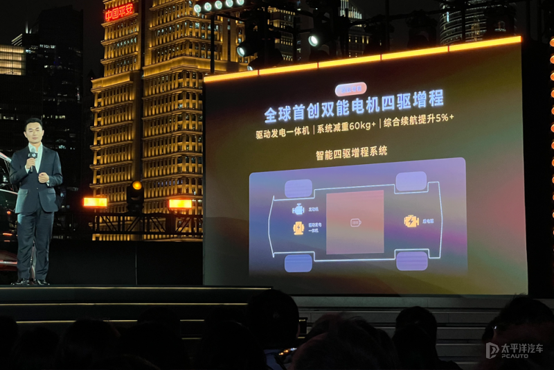 纯电版配备全栈1000V三电系统与 115kWh 超级混合电芯,CLTC纯电续航720公里,综合功率 540kW,轮端扭矩 8770牛・米,搭载行业首创的34合1超级热管理模块。